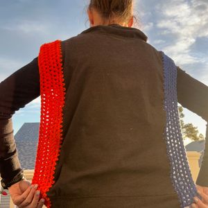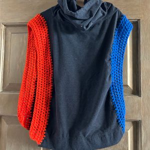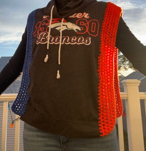 Denver Broncos shirt turned one of a kind poncho. Sides are open so you can wear as many layers underneath as necessary. Crochet added to sides by hand by me. Machine washable, gentle cycle. Includes s&h.