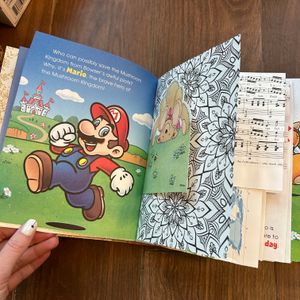 One of a kind junk journal/scrapbook/ baby book from a Super Mario Brothers Little Golden Book. I am new to book binding, but there are two sections secured with waxed thread. Over 100 sides of paper to fill made with book pages, ledger pages, journaling space, envelopes, card stock, sheet music (May contain religious themes) etc. Glue, tape, tuck in, and write about your favorite memories. Includes s&h.