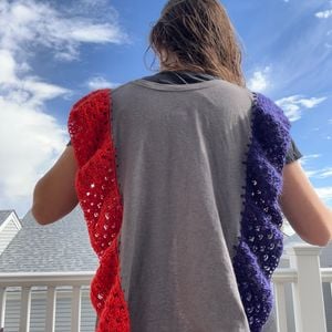 Denver Broncos Super Bowl tee turned flirty poncho with crochet ruffles. Fits sm-med and is cute over a bralette or tank (or open- I won’t judge). Crochet done by me. Hand wash is best for this one! Includes s&h.