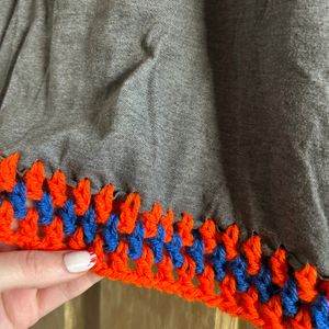 Broncos Super Bowl 50 shirt with crochet (done by me) trim. Size small. One of a kind for game day. Machine washable, gentle cycle. Includes s&h.